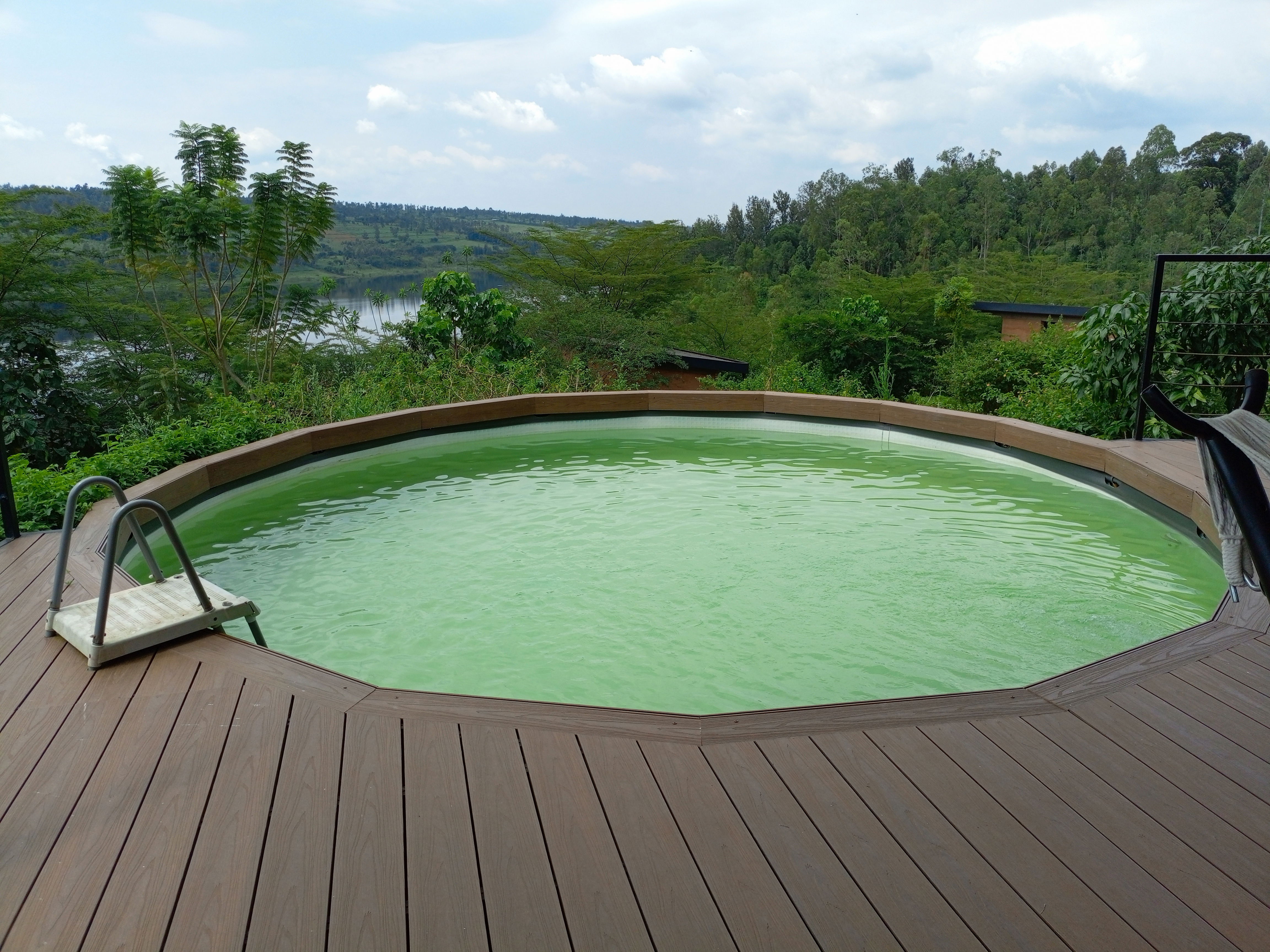 Small, round, and bubbling like a jacuzzi, the pool offers a sense of intimacy while the panoramic views remind you that the beauty of Muhazi is never far from sight.