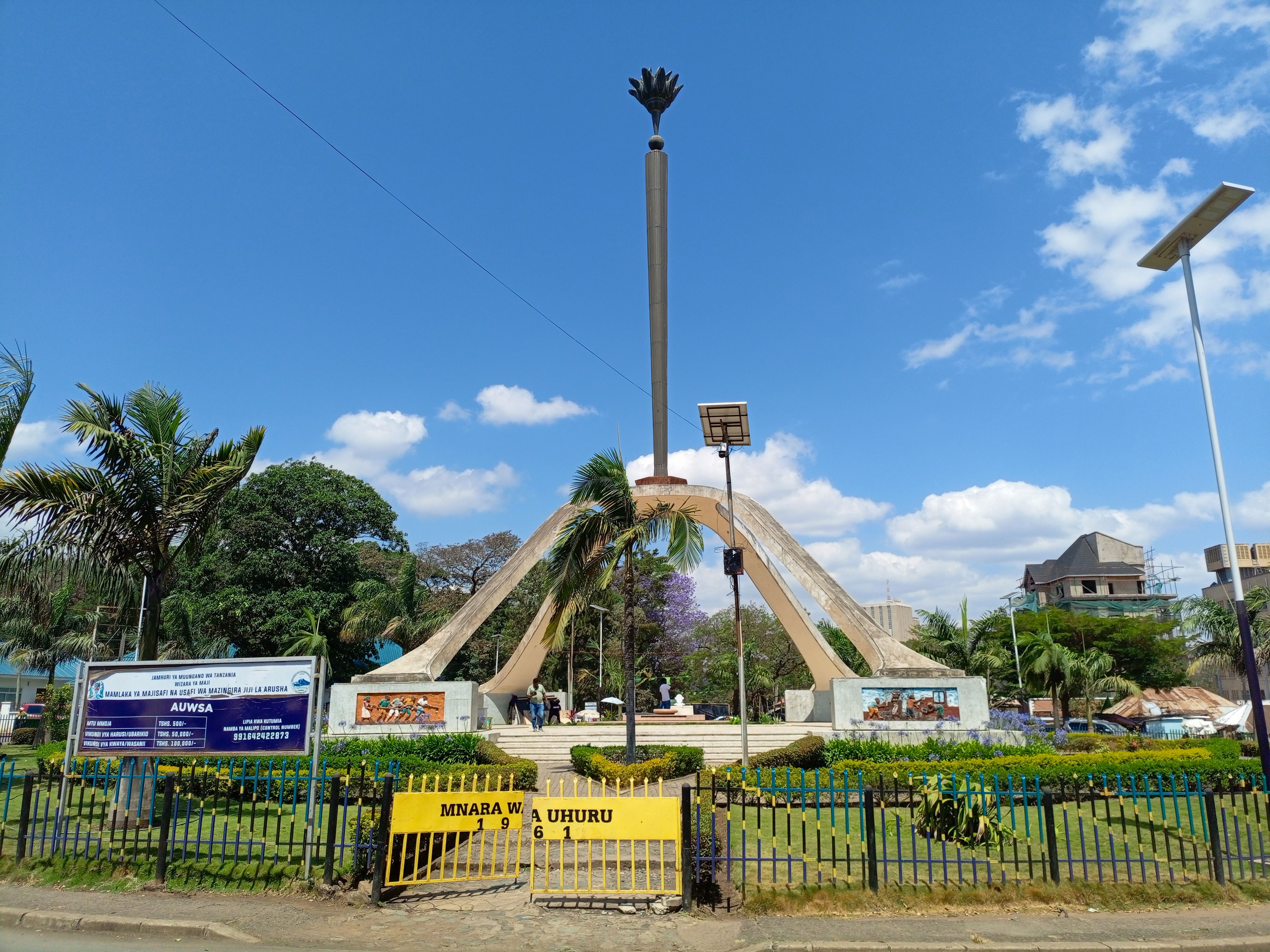 When I stepped out of the museum, the morning sun had brightened, casting long shadows across the streets. Just a short walk away stood another piece of history I couldn’t ignore—the Uhuru Torch Monument. Standing tall in the middle of a busy roundabout, the monument is crowned with the symbolic mwenge wa uhuru (the torch of freedom).