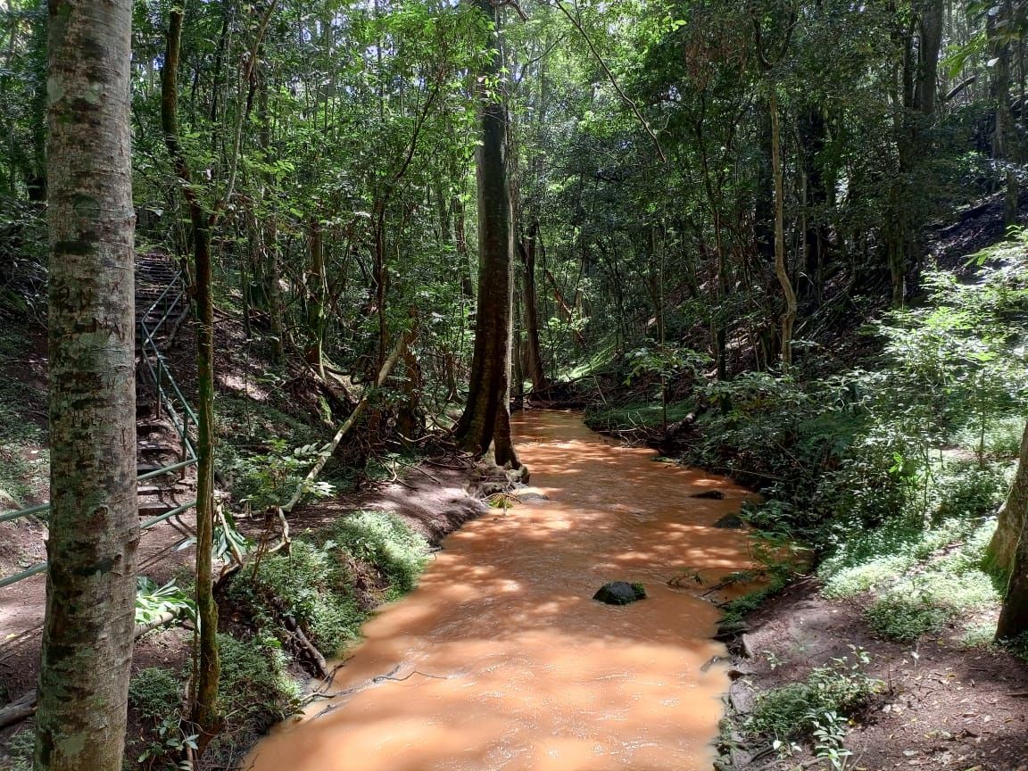 From the caves, I followed a narrow trail alongside Karura River—its gentle flow guiding me onward. The path eventually led me to the waterfall, where water cascaded over a 15-meter drop, sending up mist that shimmered in the morning light. I paused at the base, soaking in the steady roar of the falls and the serene energy of the forest around me.