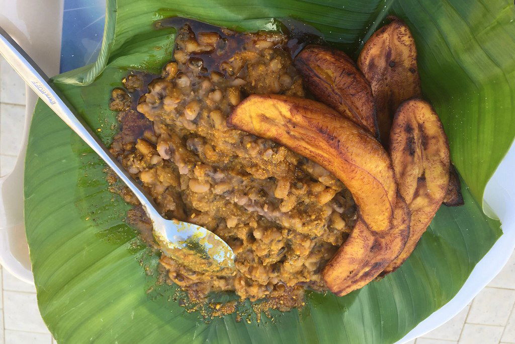 My lunch, composed of fried plantain and a mixture of beans and black-eyed peas, was served on banana leaves. After the meal, I nursed some coconut juice while gazing at the splashing Atlantic waves.