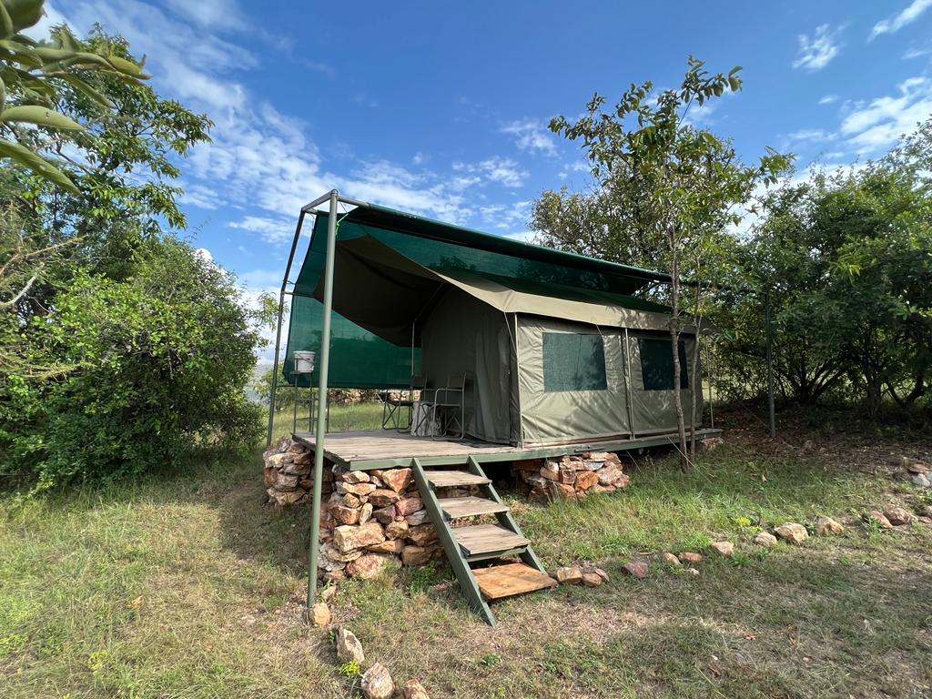 Karenge Bush Camp can accommodate up to twelve people at a time. Each tent has an open toilet and an equally unenclosed solar-heated shower.