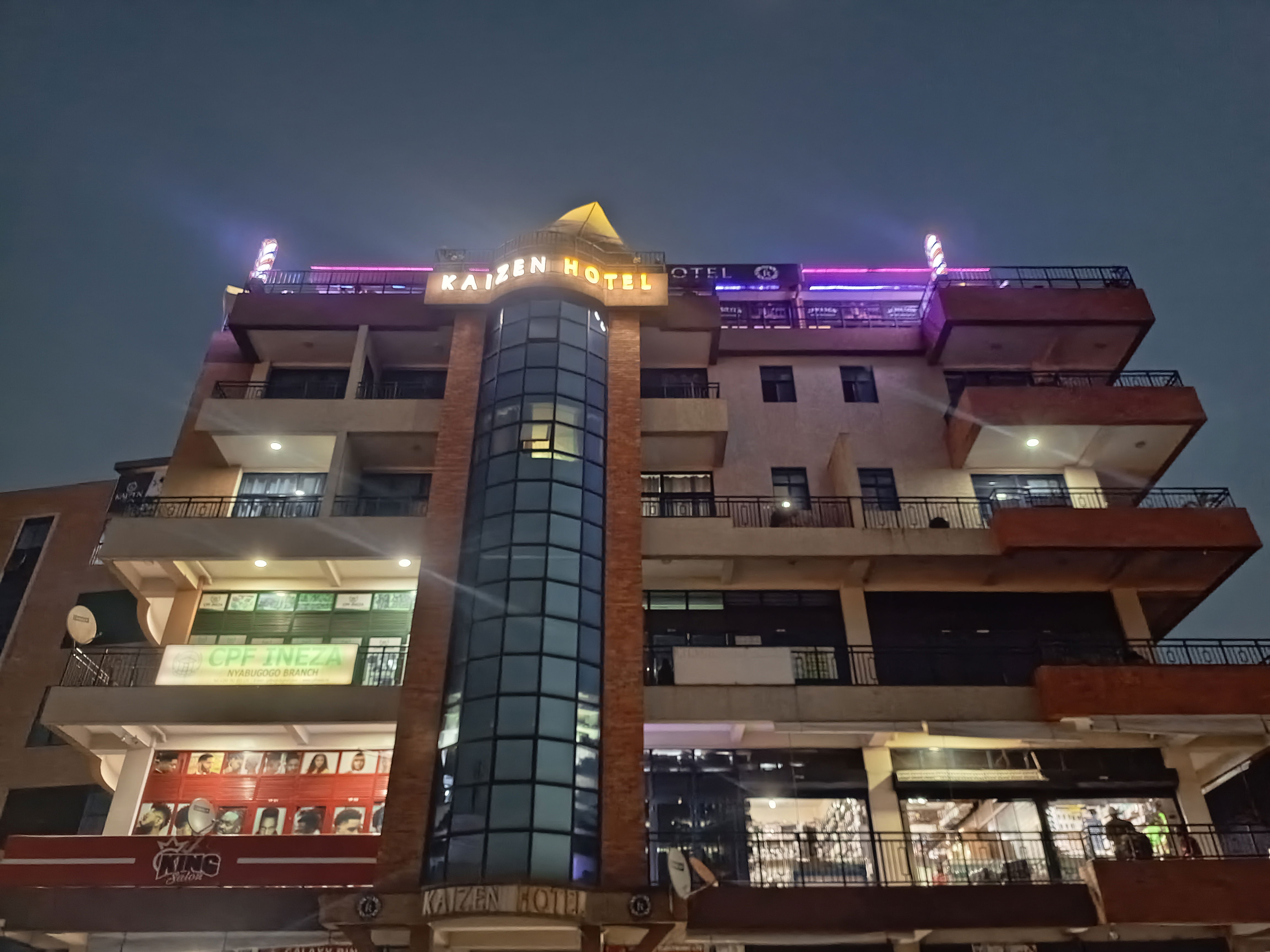 Kaizen Hotel is one of those establishments that catches your eye from a distance. Its façade is striking, and the ground floor buzzes with shops and small businesses — a microcosm of Nyabugogo’s entrepreneurial spirit.